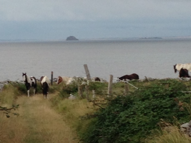 It’s the complete Wild West here with horses and cows (and a donkey) roaming freely all over common fields without fences. They wander along the banks, down to the beach, up by the graveyard and around the point. I’ve been followed by a cow onto the beach and into the ocean when I was taking a swim.